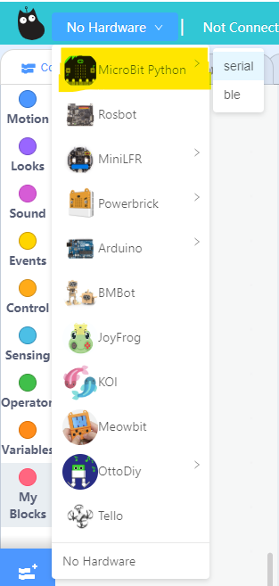 Load Powerbrick Extension: https://github.com/KittenBot/pxt-powerbrick