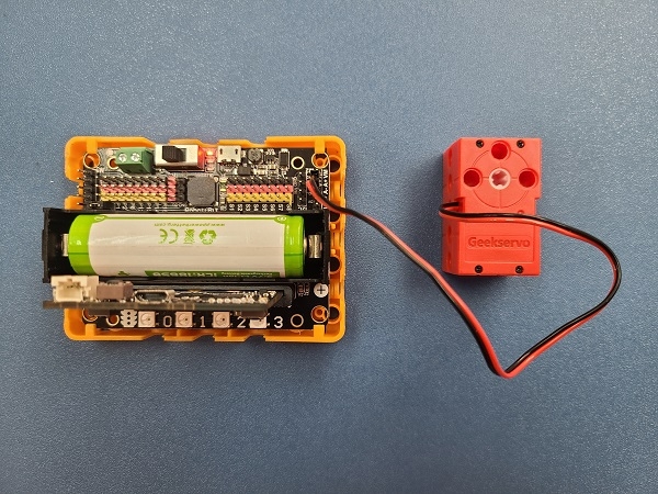 This is a motor compatible with Lego technic parts, compared to 9g motors, it has a higher speed. The output axle is a Lego technic axle connector. It is suitable for applications where a high power driver is required.