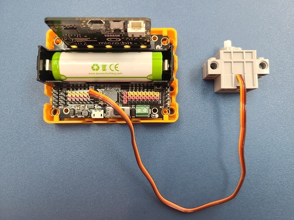 Connect the servo to the servo ports of the Robotbit.