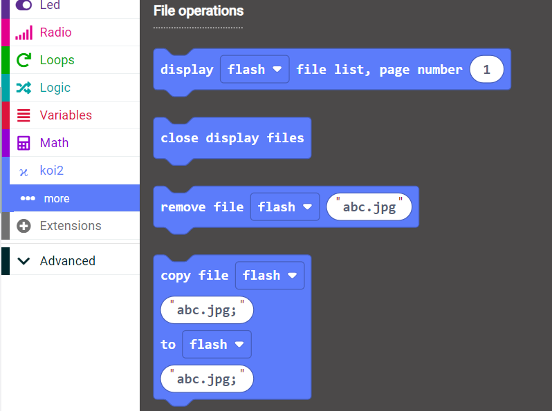 #### Extension link: [**https://github.com/KittenBot/pxt-koi2**](https://github.com/KittenBot/pxt-koi2)