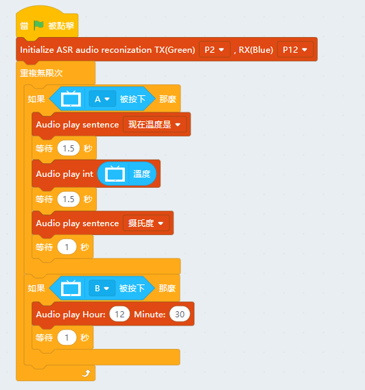 1. Press A or B to make the module speak the corresponding text.