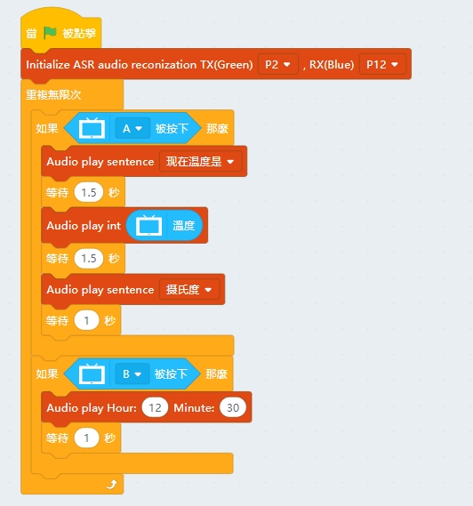 5. Press A or B to make the module speak the corresponding text.