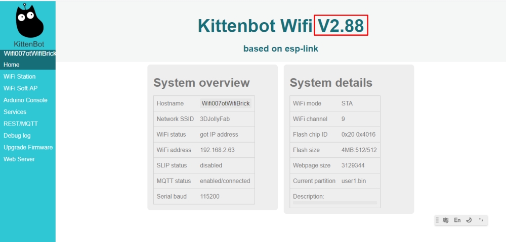 Kittenbot may release Wifi firmware updates periodically to improve stability and performance.