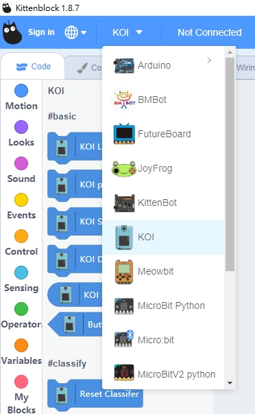 1. Clicking on the blocks has no effect after connecting the KOI.