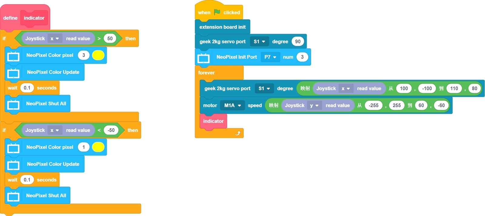 Push the joystick to control the rc kart. The indicators will light up when steering.