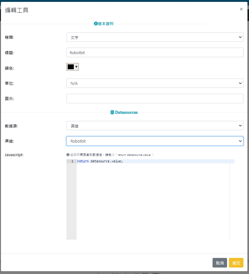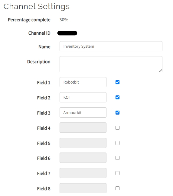 Create a ThingSpeak will data fields: Robotbit, KOI, Armourbit.