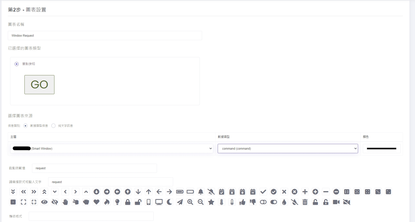7. Create charts for “command” data type of Smart Window to publish data “request”, “open”, “close”