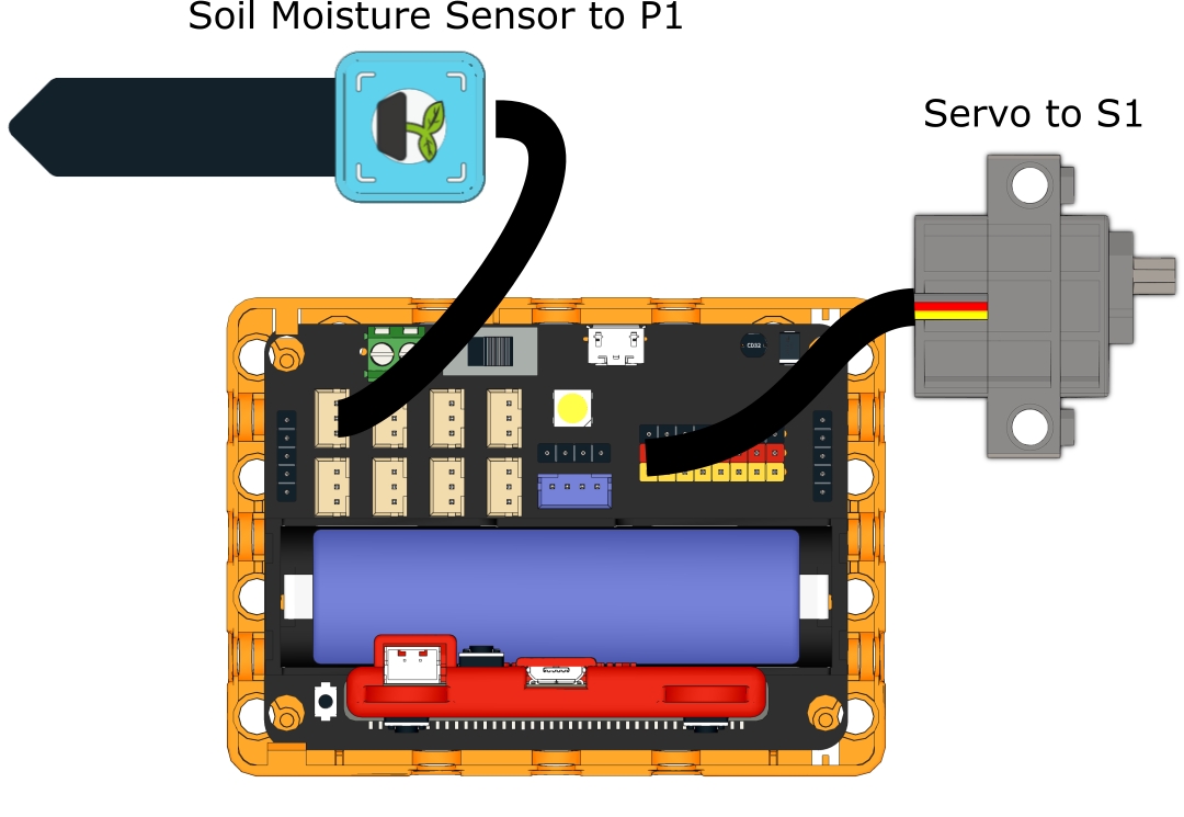 Insert the soil moisture sensor into the soil of the flower pot, alarm will sound when the soil moisture is too low.