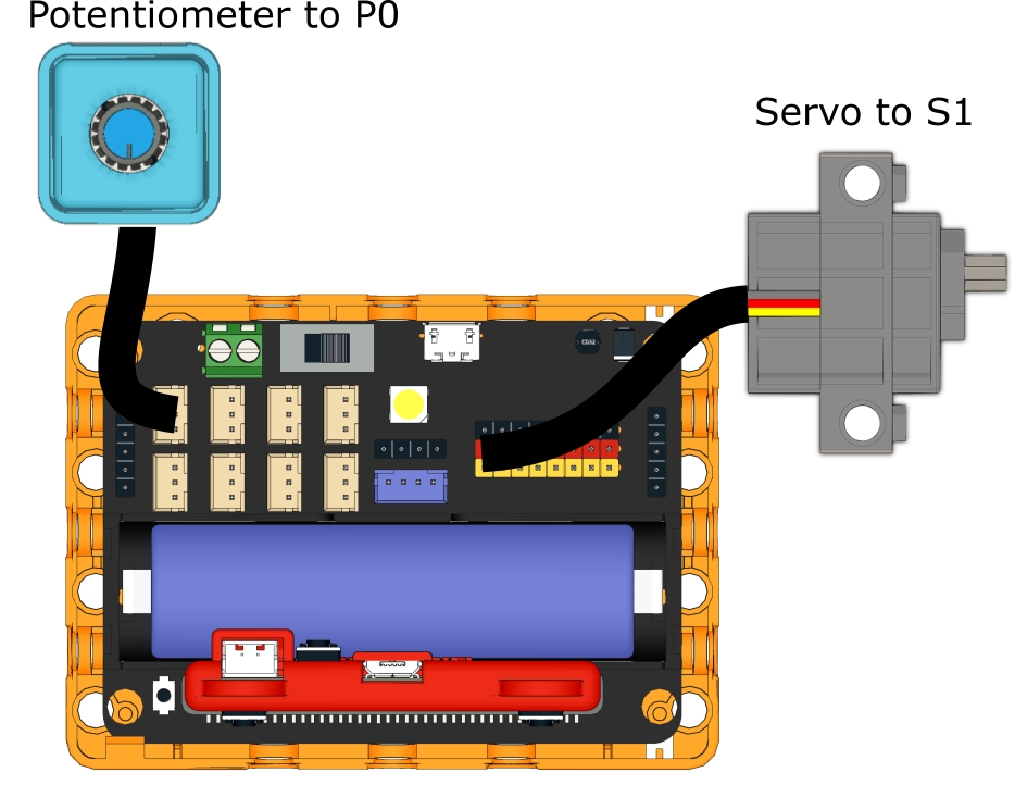 Select letters by turning the potentiometer, press A to enter the letter. Press B to confirm the password, the door will open if the password is correct.