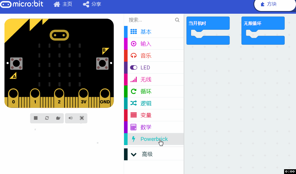 Powerbrick can be programmed using Microsoft’s MakeCode editor.