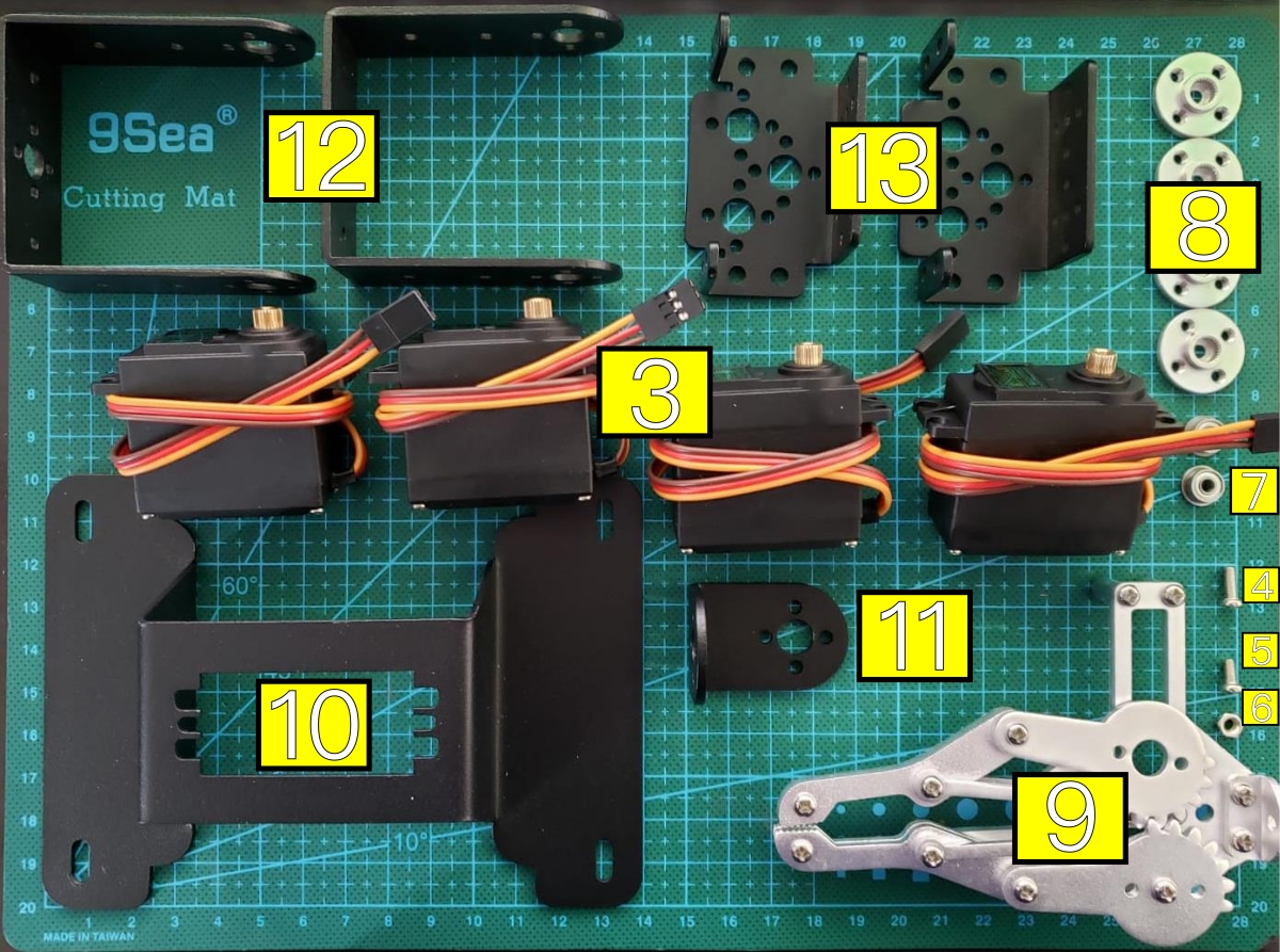 Make a robotic arm controlled by 4 high torque servos with this kit.
