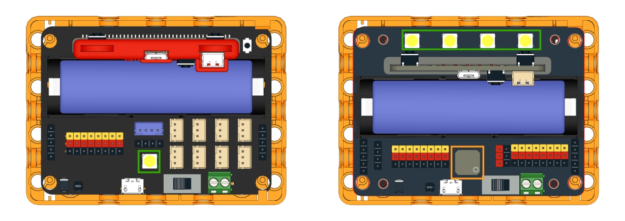 Robotbit 2.2 has 4 RGB LEDs and a buzzer.