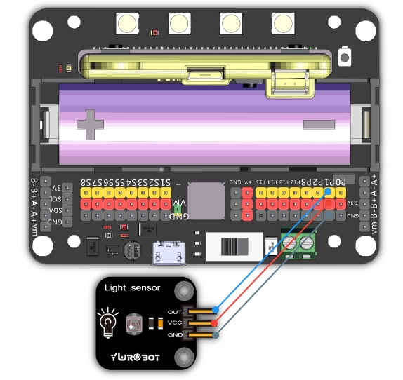 Connect the sensor to Robotbit’s pin and 3V pin.
