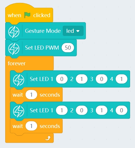 In Gesture Mode, the LEDs light up corresponding to the direction of movement.