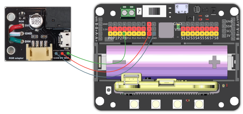 RGB LED Screen is used with the Robotbit, please refer to the following figures.