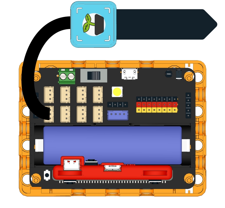 This is a soil moisture sensor module in the Sugar sensor series, the pin holes on the back allow compatibility with plastic building bricks.