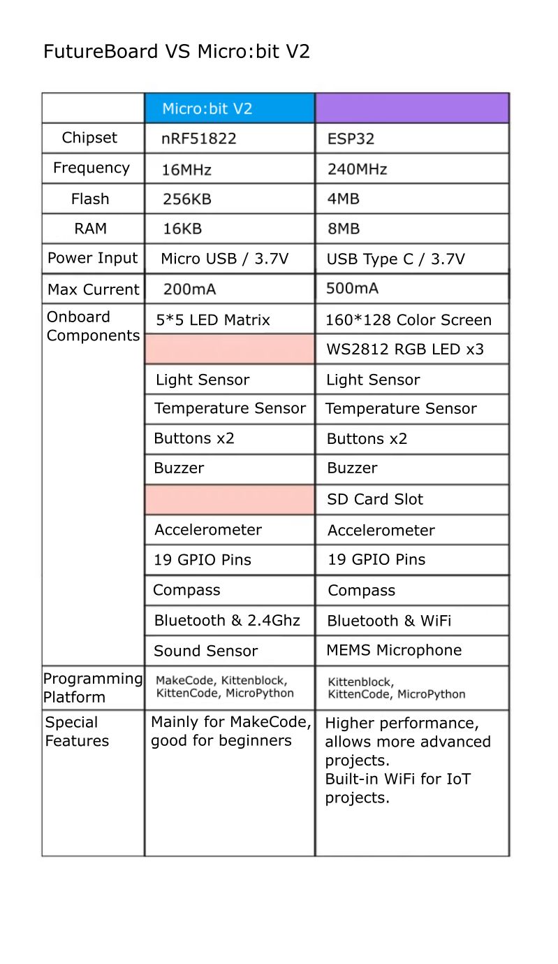As the name suggests, FutureBoard is a main control board designed for STEM education in the future. It has many built-in sensors just like the Micro:bit, but unlike the Micro:bit, FutureBoard features a TFT screen capable of displaying full colors. This allows students to display information in real-time and to unlock even more potential for more interesting coding projects.