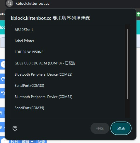 未來板就會重新開機，等待未來板開機完成就可以在選單選擇GD32 USB CDC ACM。