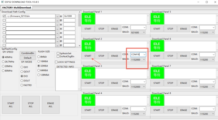 Click the Firmware Flashing button to update the firmware, wait for about 2 minutes until the update is complete.