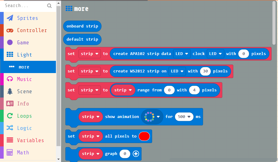 Blocks for controlling the LED strip