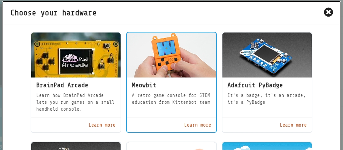 Select Meowbit from Hardware Menu