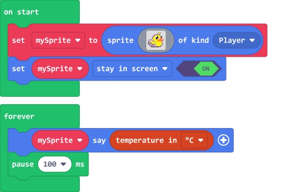 Meowbit has a built-in Temperature Sensor that allows it to detect the ambient temperature.