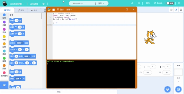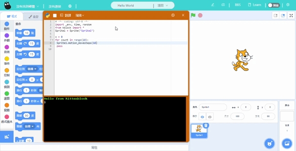 A Python editor has been integrated into KittenBlock, while many programming blocks are powered by Python code.