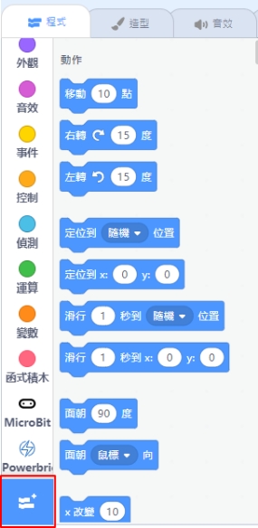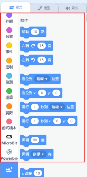 This is the menu for selecting different coding blocks.