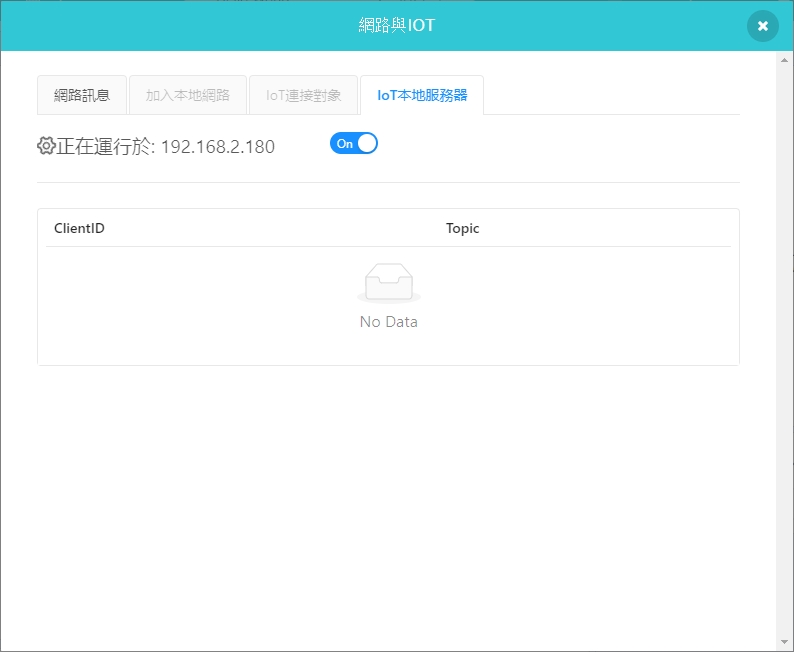 A simple MQTT host is included in KittenBlock, users can publish and subscribe messages on this platform.