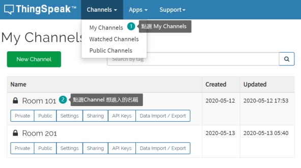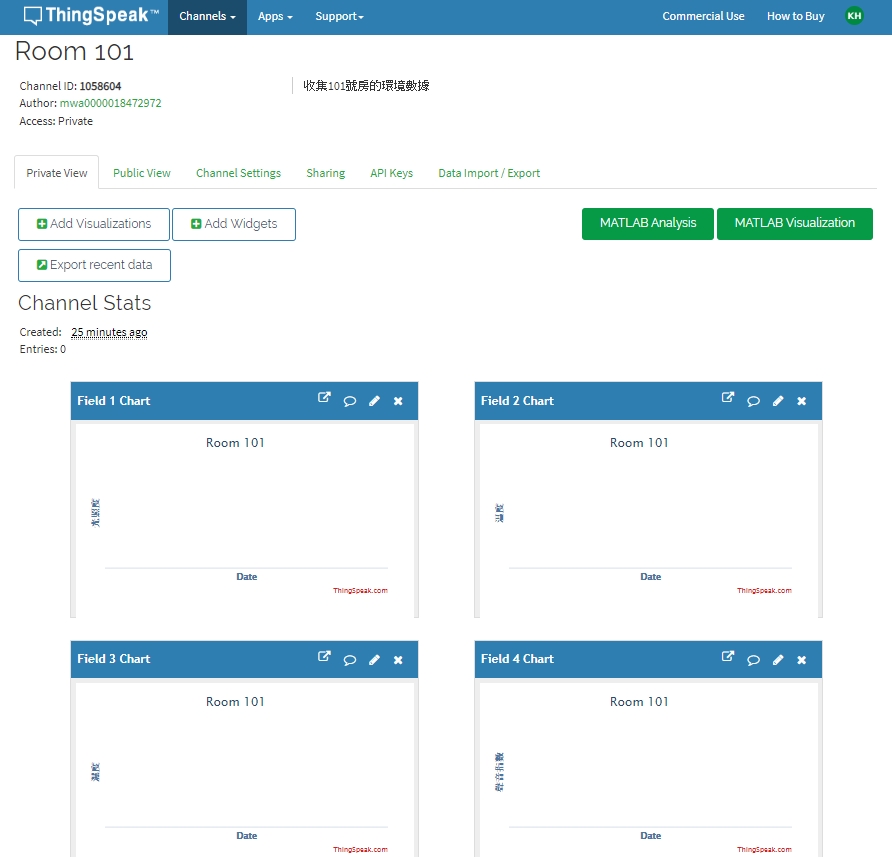 ThingSpeak is a IoT analysis platform managed by Mathworks, through the internet, data can be collected and uploaded to ThingSpeak using Rest API or MQTT protocol, the data is analyzed and represented as real time graphs.