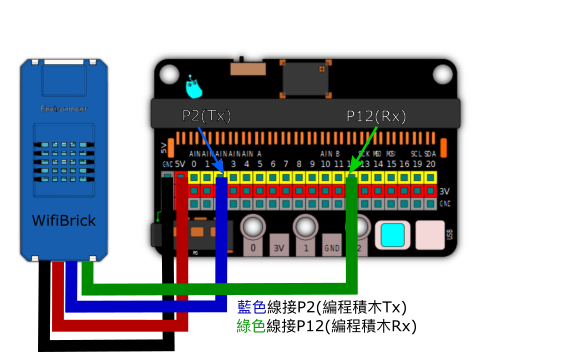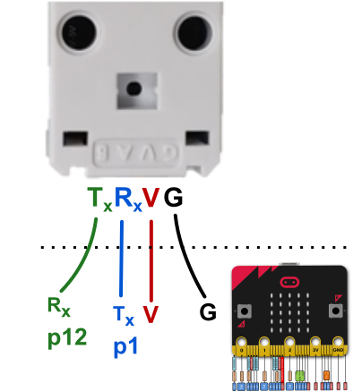 In this figure, Port 2 is used, this corresponds to P1 and P12 of the Micro:bit.