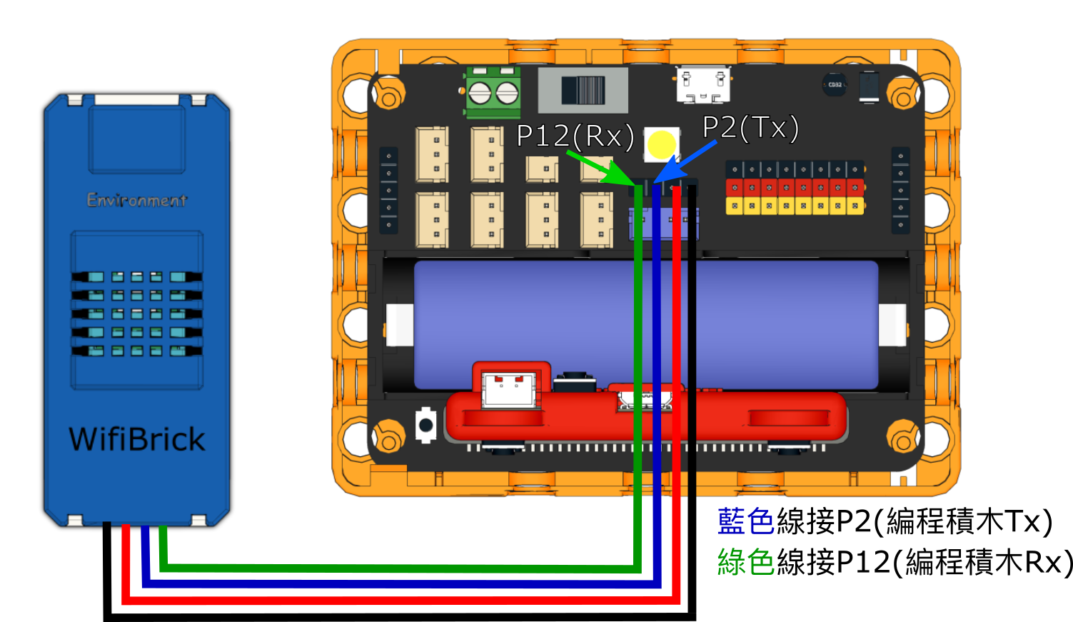 Armourbit is an expansion box designed for Micro:bit. Wifibrick can be connected to Armourbit using a 4Pin cable.
