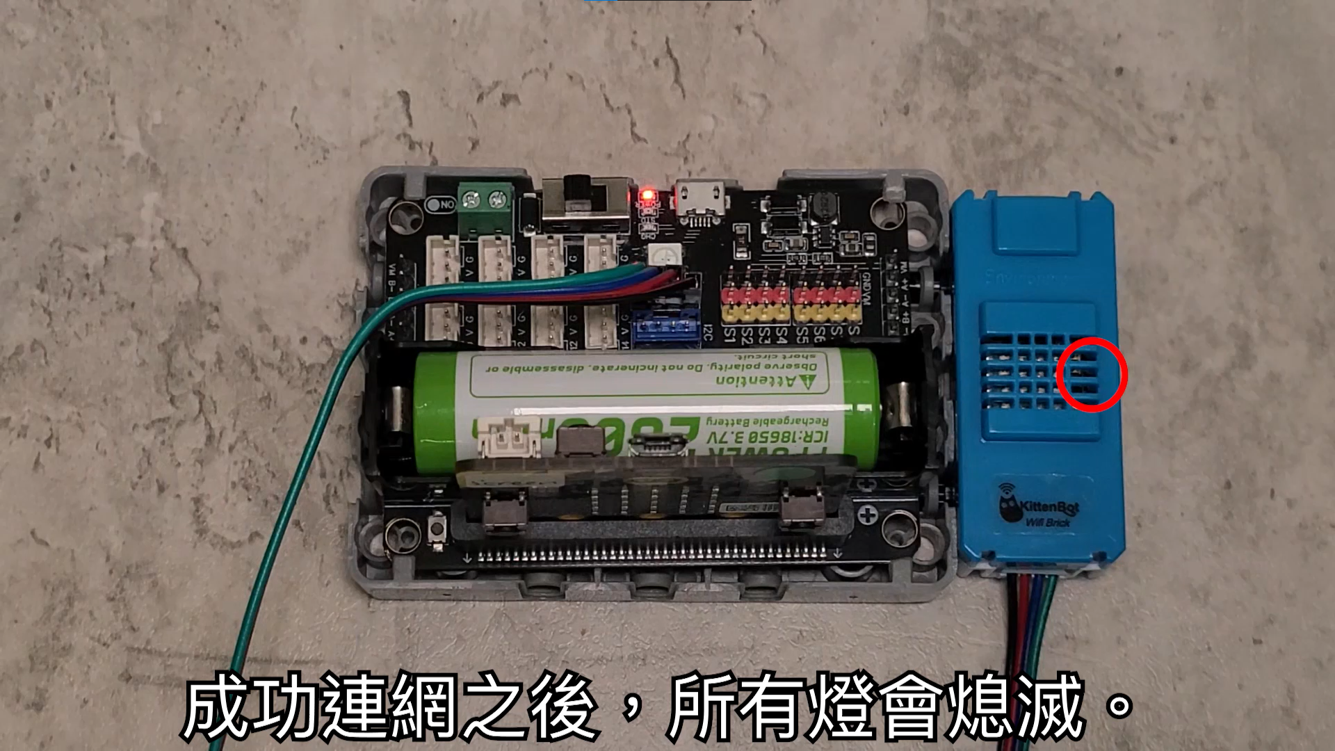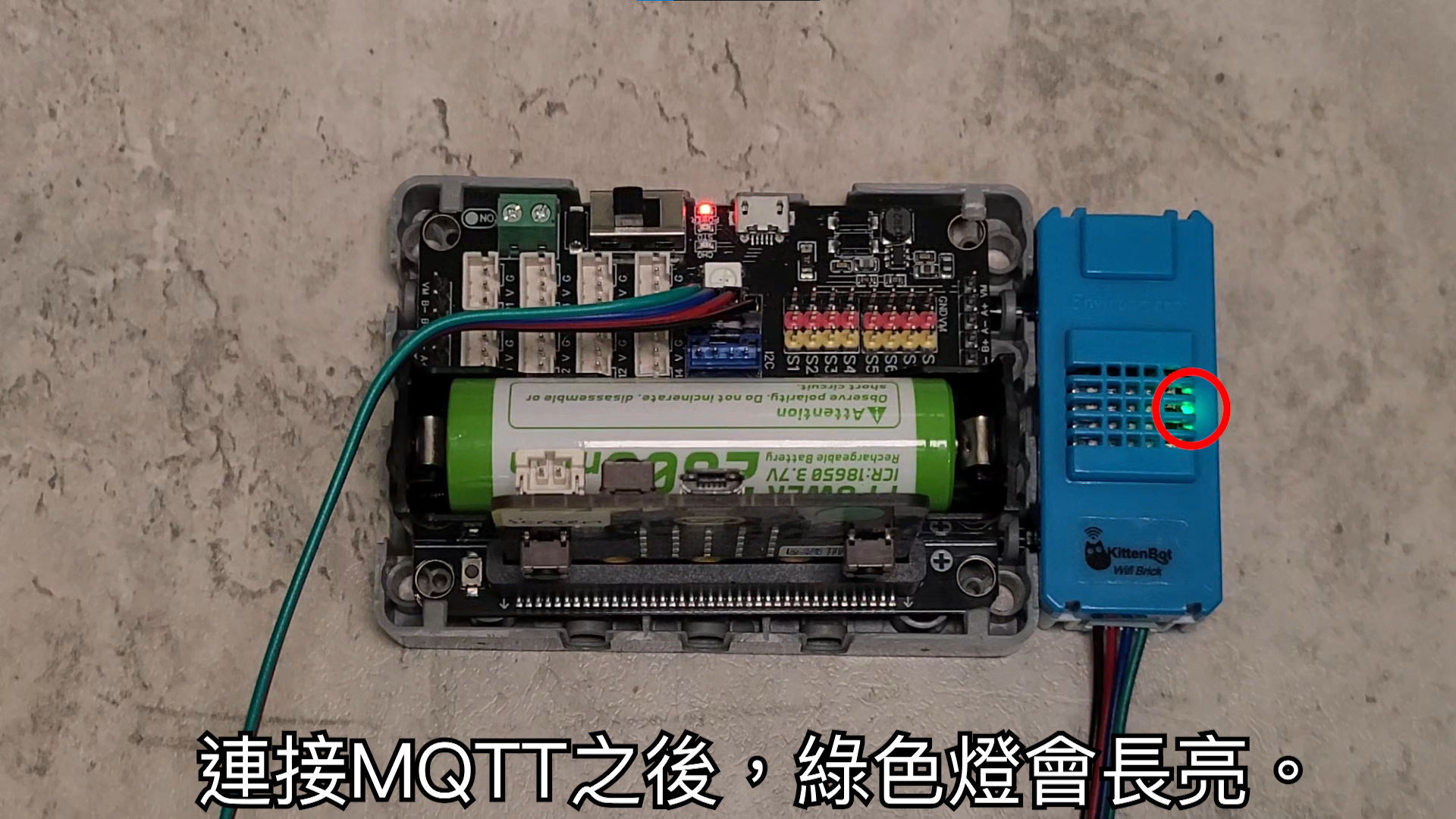 A green light turns on when it is connected to the MQTT platform.